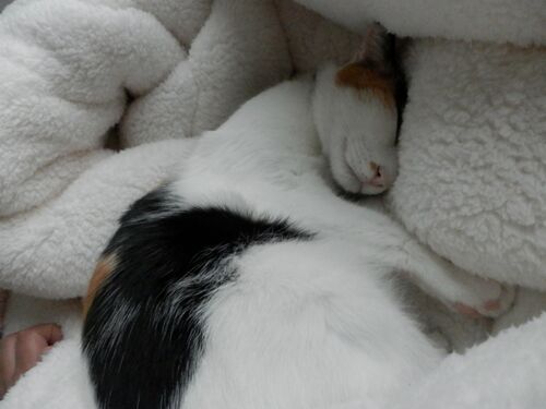 すず様は 毎日、私と一緒に寝ます。 ぽんちゃんは、明け方モソモソ布団に潜ってきて 体が温まると出ていきます。。。(;´∀`)通い猫? 毎日、私をあったか座布団と 勘違いしている猫達。。。 すず「暖かくて、ぜい肉がふかふかですわ」 。。。だまらっしゃい…