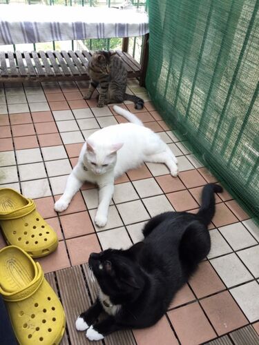 兄の家の 三びき組から 可愛い写真が届いています(*´ω`*) ⬇ まずは、、、 一直線♪ くろ しろ しましま の共演です( ´∀`)良いことありそう? 仲良し そらりん と おとめちゃん♪ 順調なら 週明けに 避妊手術の予定の おとめちゃんです♪ こうしてみると そら…