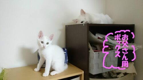 保護猫クリップ 滞在31日 すっかり 我が家みたいな 顔で 過ごすようになっています; (背景がぐちゃぐちゃですが・・) 白いふたりは 気になる 関係のようです ただ・・・ 手加減なしの 猫パンチと 猫キックで じゃれてくる クリップの攻撃が ミルちゃん…